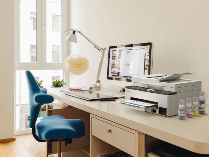 Ta niewielka drukarka 4 w 1 ze zbiornikiem MegaTank zapewnia w domu taki komfort pracy jak w biurze. Szybko drukuj duże ilości dokumentów biznesowych w wysokiej jakości, korzystając z przystępnych cenowo butelek z atramentem.